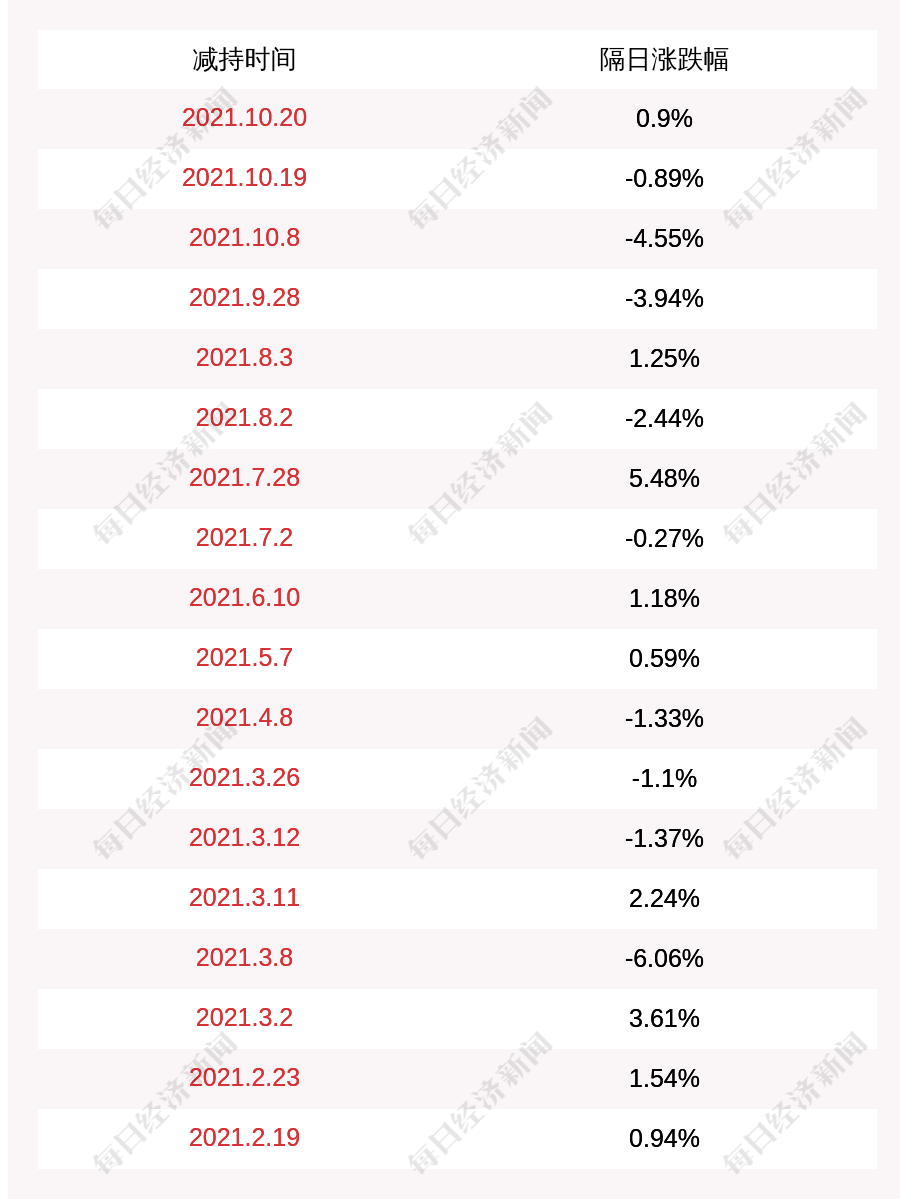 3. 嘉泽新能上次发布减持公告是2021年10月20日,第二个交易日上涨0.9%,嘉泽新能近一年共发布19次减持类公告。