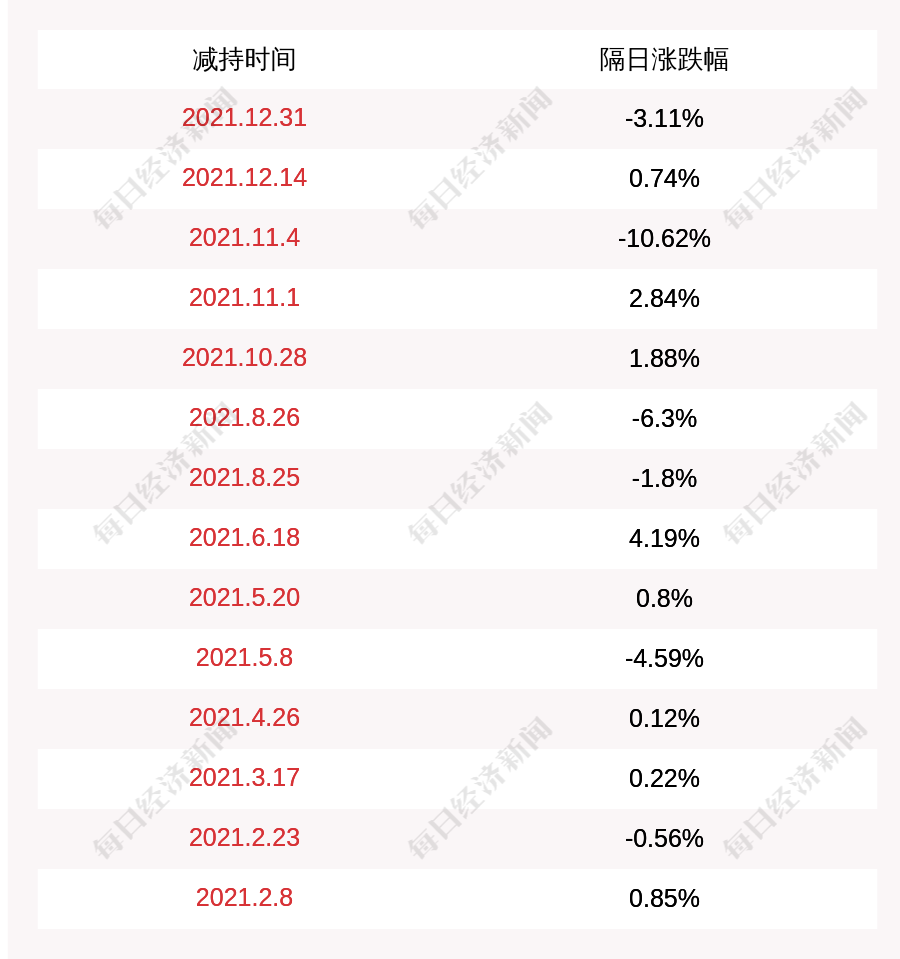 2. 高澜股份上次发布减持公告是2021年12月31日,第二个交易日下跌3.11%,高澜股份近一年共发布15次减持类公告。