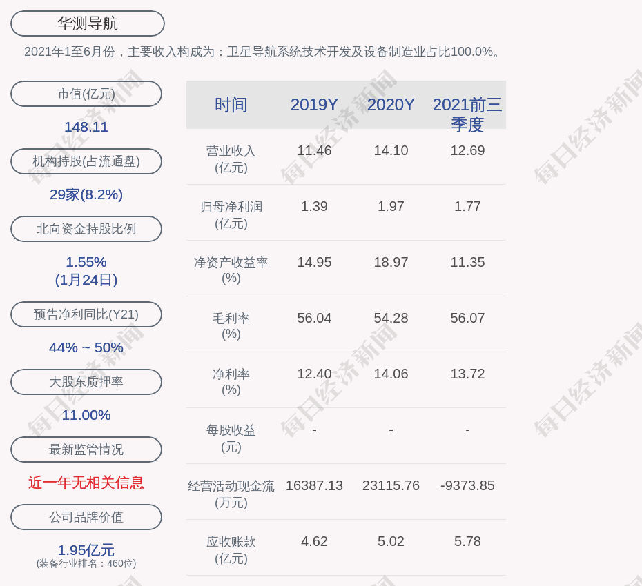 2021年1至6月份,华测导航的主要收入构成为:卫星导航系统技术开发及设备制造业占比100.0%。