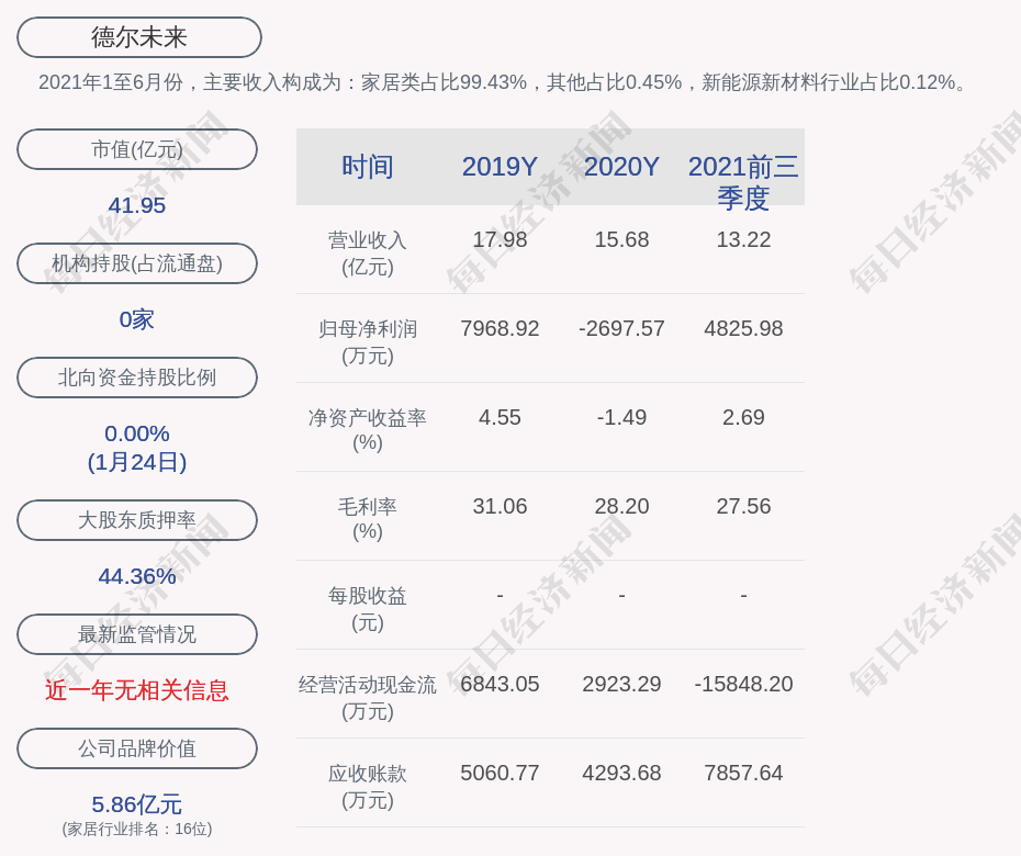 2021年1至6月份,德尔未来的主要收入构成为:家居类占比99.43%,其他占比0.45%,新能源新材料行业占比0.12%。