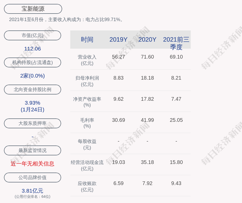 2021年1至6月份,宝新能源的主要收入构成为:电力占比99.71%。
