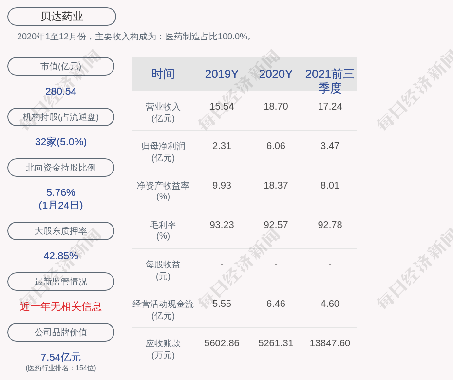 2020年1至12月份,贝达药业的主要收入构成为:医药制造占比100.0%。