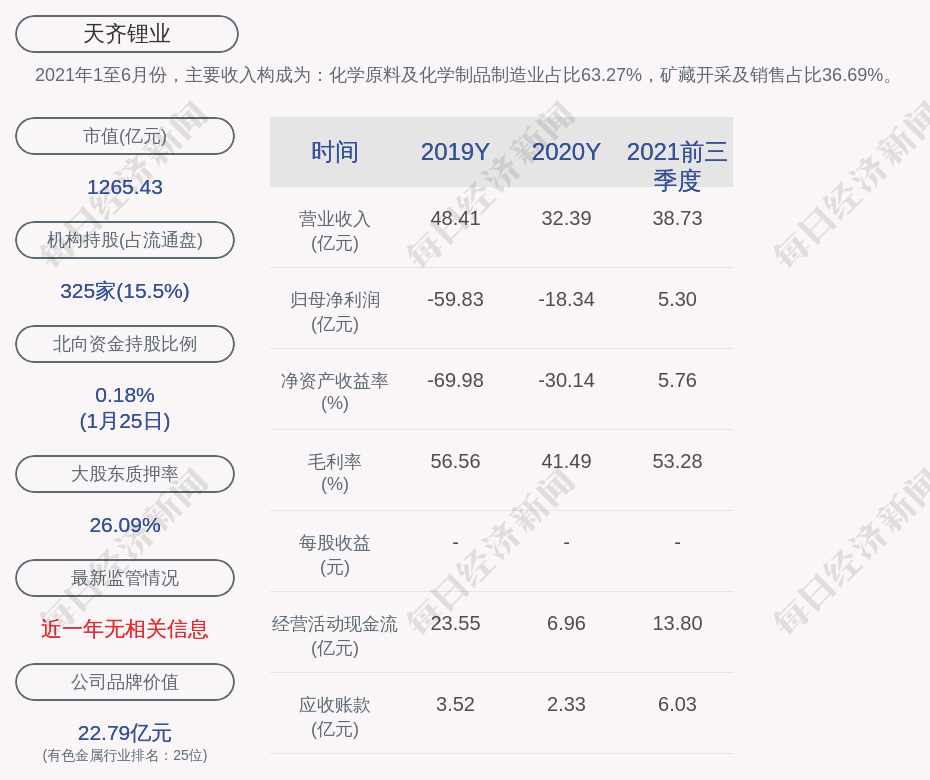 3. 根据各大券商对天齐锂业净利润的预测,天齐锂业2021年年度预测净利润平均值为8.33亿元。天齐锂业去年同期净利润为-18.34亿元。