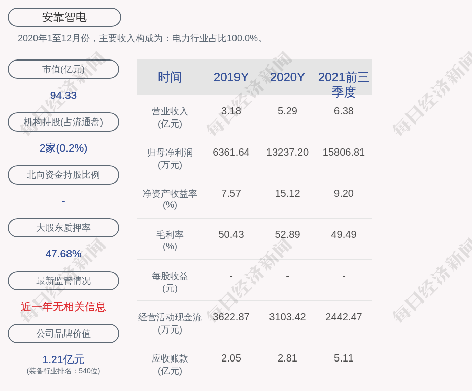 2. 根据各大券商对安靠智电净利润的预测,安靠智电2021年年度预测净利润平均值为2.27亿元。安靠智电去年同期净利润为1.32亿元。