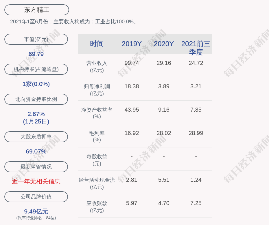 2021年1至6月份,东方精工的主要收入构成为:工业占比100.0%。