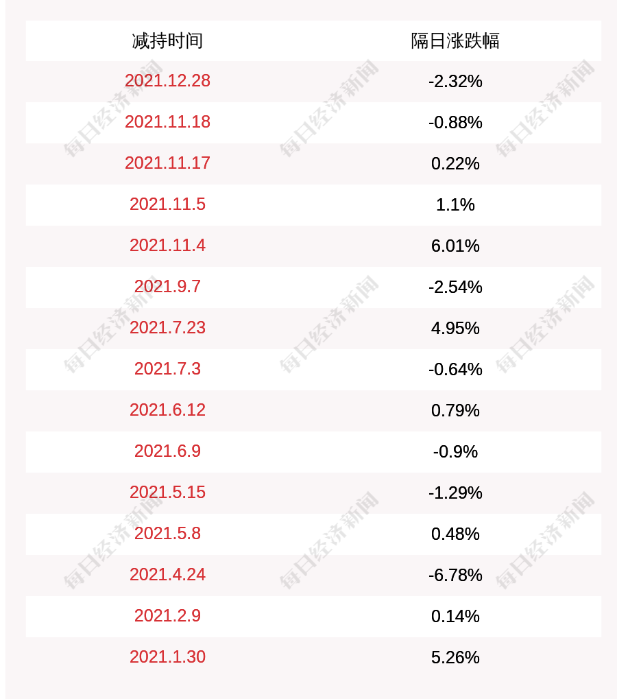 3. 太平鸟上次发布减持公告是2021年12月28日,第二个交易日下跌2.32%,太平鸟近一年共发布16次减持类公告。