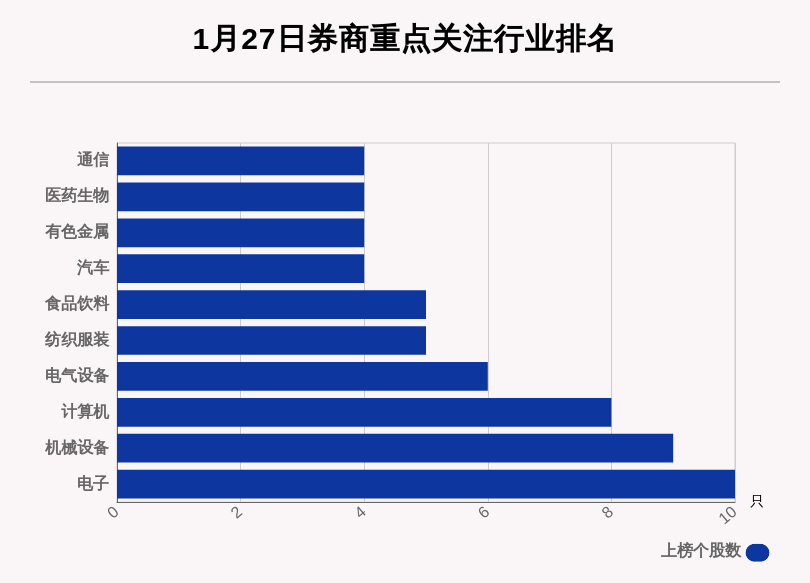 从券商对行业的关注度来看,券商关注个股数居前的行业分别是电子、机械设备、计算机。