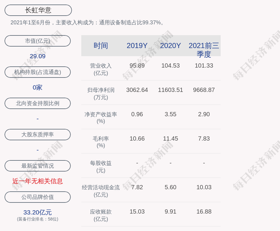 2021年1至6月份,长虹华意的主要收入构成为:通用设备制造占比99.37%。
