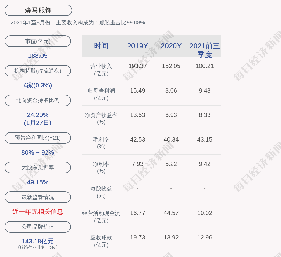 3. 根据各大券商对森马服饰净利润的预测,森马服饰2021年年度预测净利润平均值为15.5亿元。森马服饰去年同期净利润为8.06亿元。
