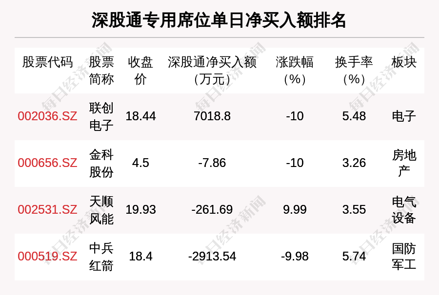 在龙虎榜中,涉及深股通专用席位的个股有4只,联创电子的深股通专用席位净买入额最大,净买入7018.8万元。
