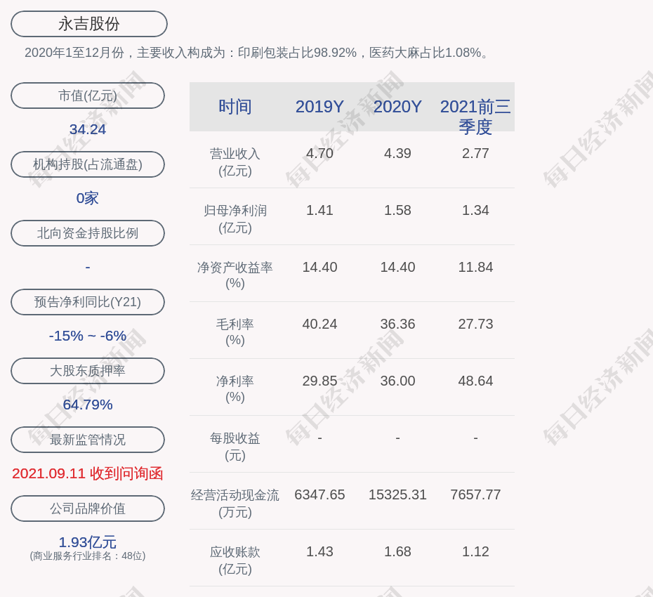 2020年1至12月份,永吉股份的主要收入构成为:印刷包装占比98.92%,医药大麻占比1.08%。