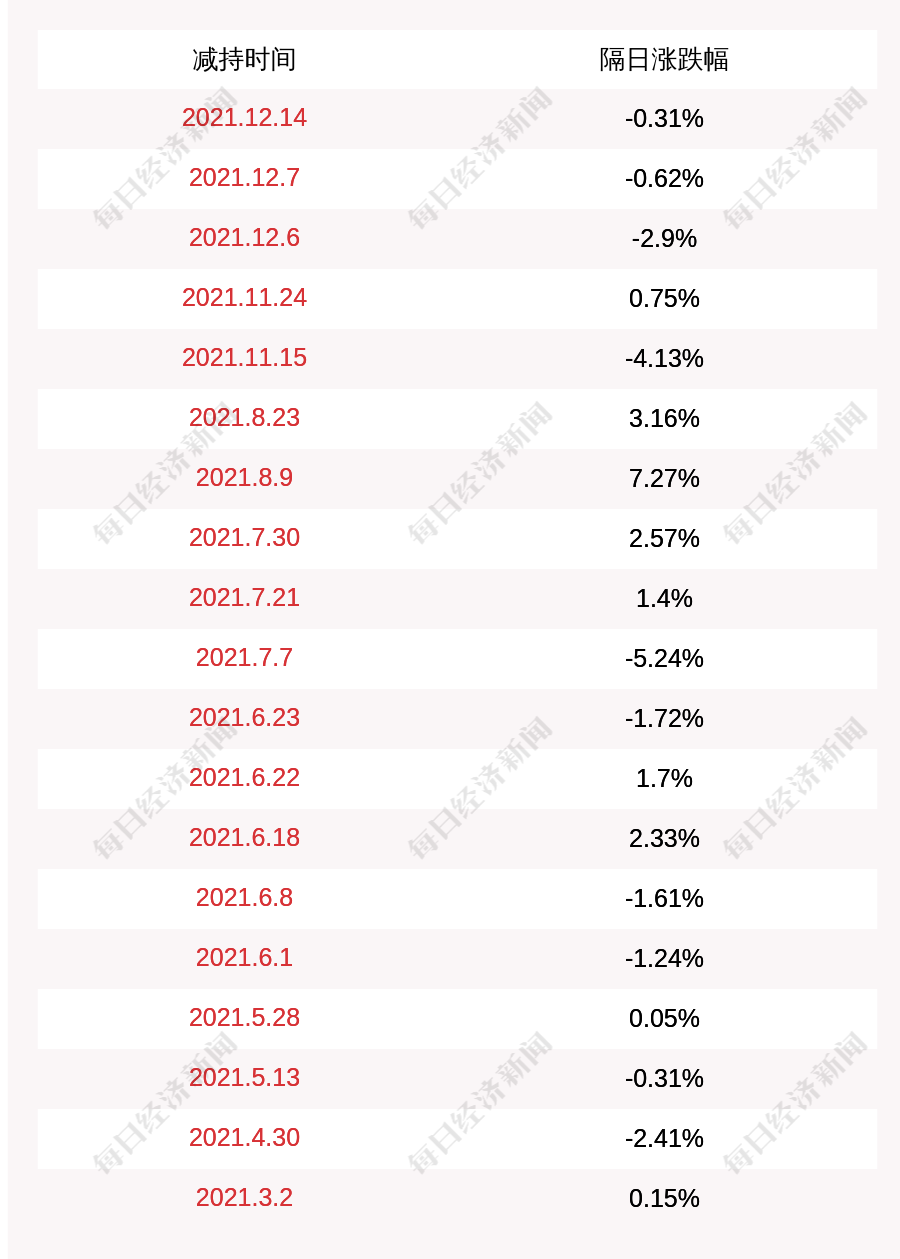 2. 南京聚隆上次发布减持公告是2021年12月14日,第二个交易日下跌0.31%,南京聚隆近一年共发布20次减持类公告。