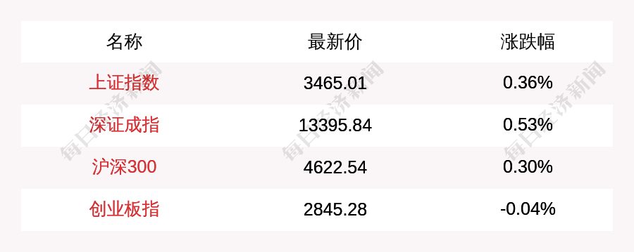 截至北京时间10:30,上证指数报3465.01点,涨0.36%,深证成指报13395.84点,涨0.53%,沪深300报4622.54点,涨0.30%,创业板指报2845.28点,跌0.04%