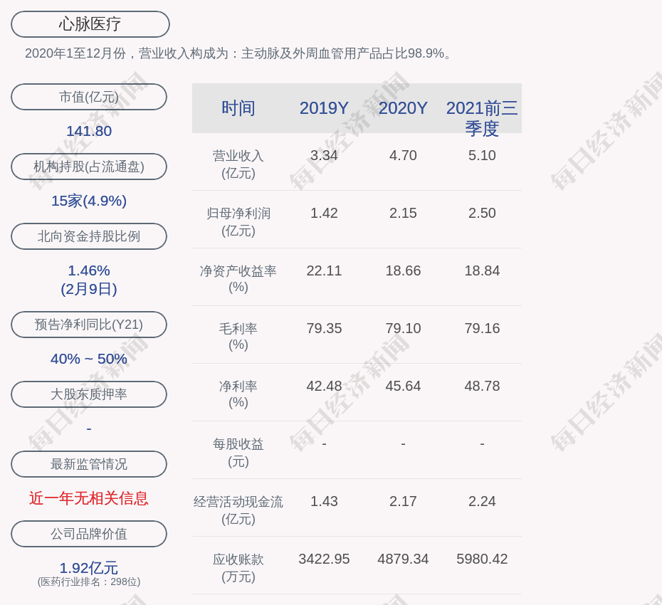 1. 心脉医疗近30日内北向资金持股量增加41.69万股,占流通股比例增加1.08%;