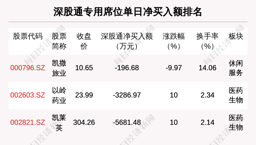 在龙虎榜中,涉及深股通专用席位的个股有3只,凯莱英的深股通专用席位净卖出额最大,净卖出5681.48万元。