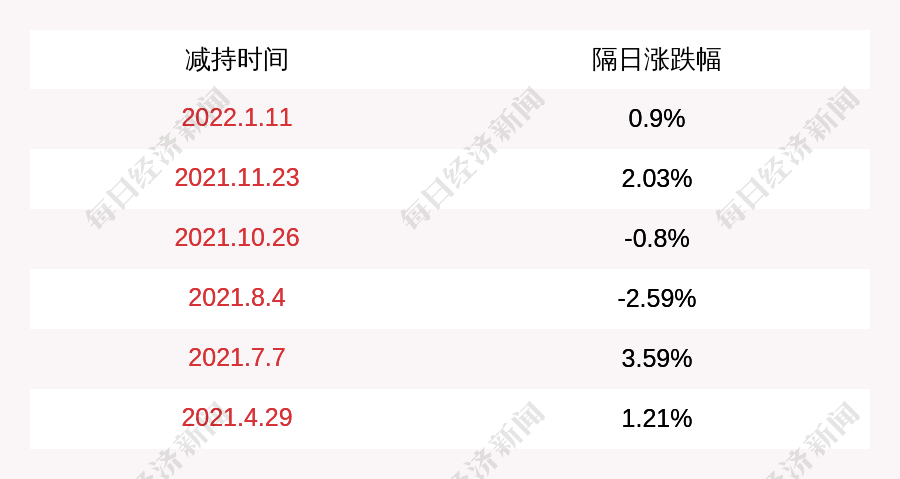 3. 和邦生物上次发布减持公告是2022年01月11日,第二个交易日上涨0.9%,和邦生物近一年共发布7次减持类公告。