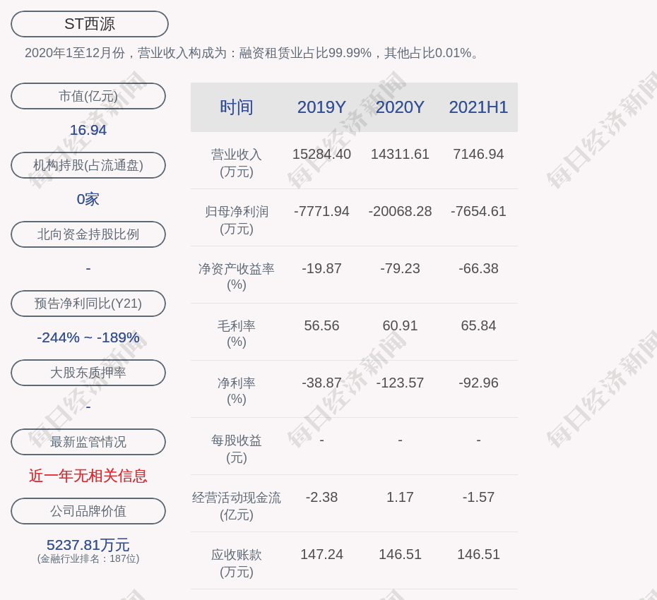 2020年1至12月份,ST西源的营业收入构成为:融资租赁业占比99.99%,其他占比0.01%。