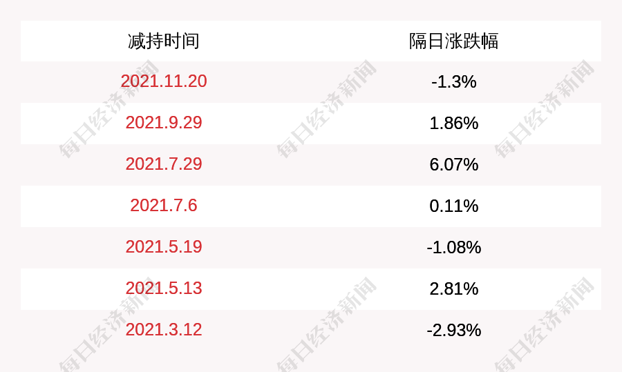 3. 汇顶科技上次发布减持公告是2021年11月20日,第二个交易日下跌1.3%,汇顶科技近一年共发布8次减持类公告。