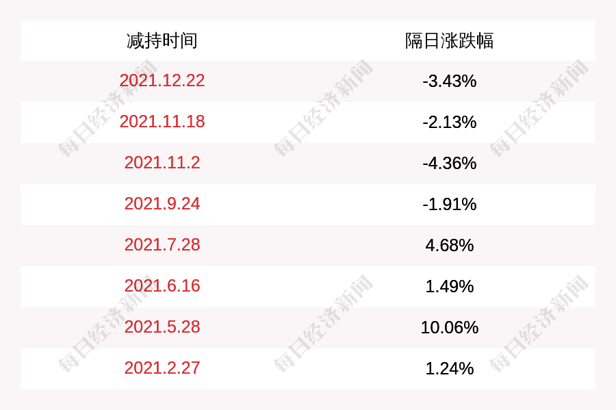 1. 金发拉比上次发布减持公告是2021年12月22日,第二个交易日下跌3.43%,金发拉比近一年共发布9次减持类公告。