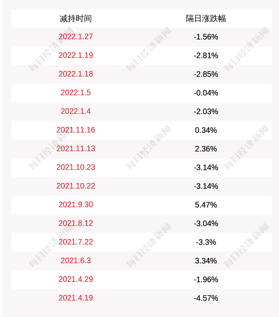 2. 成都先导上次发布减持公告是2022年01月27日,第二个交易日下跌1.56%,成都先导近一年共发布16次减持类公告。