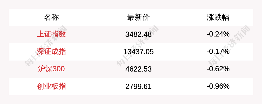 截至北京时间14:30,上证指数报3482.48点,跌0.24%,深证成指报13437.05点,跌0.17%,沪深300报4622.53点,跌0.62%,创业板指报2799.61点,跌0.96%