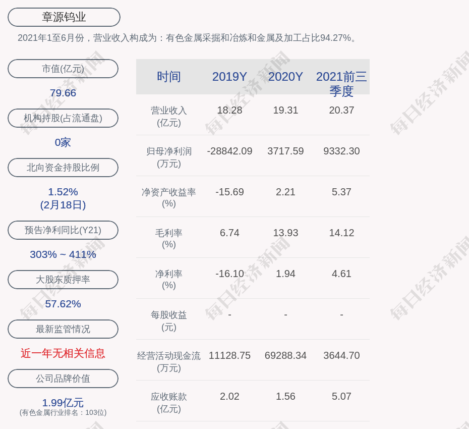 每经AI快讯,章源钨业(SZ 002378,收盘价:8.62元)2月21日晚间发布公告称,本次担保提供后,公司及控股子公司对外担保总余额为1.9亿元,占公司2020年度经审计净资产的11.27%;公司及控股子公司对合并报表外单位提供的担保总余额为0。