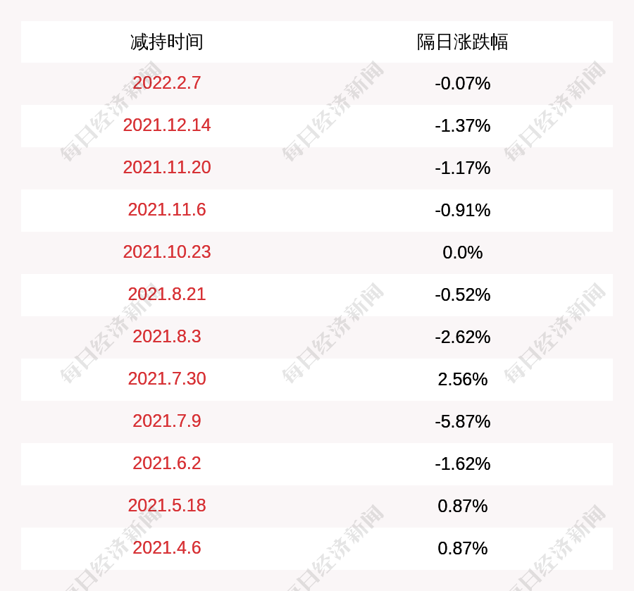 3. 杭州银行上次发布减持公告是2022年02月07日,第二个交易日下跌0.07%,杭州银行近一年共发布13次减持类公告。