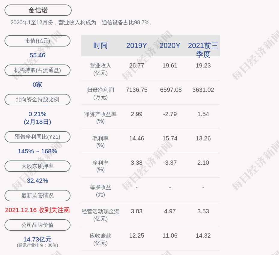 2020年1至12月份,金信诺的营业收入构成为:通信设备占比98.7%。