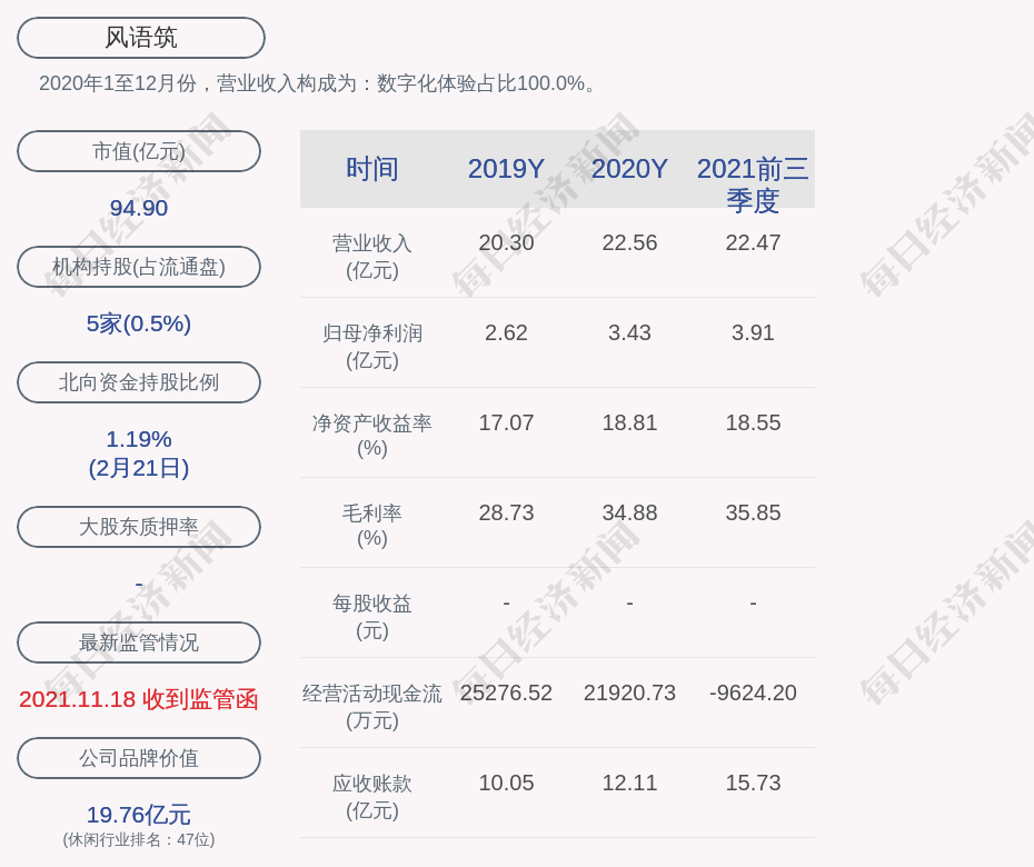 2020年1至12月份,风语筑的营业收入构成为:数字化体验占比100.0%。