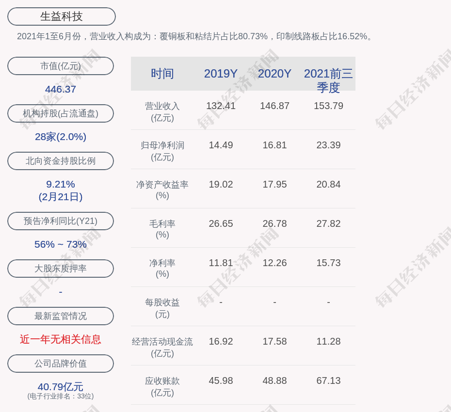 2021年1至6月份,生益科技的营业收入构成为:覆铜板和粘结片占比80.73%,印制线路板占比16.52%。