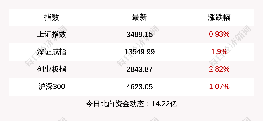 2丨整点投资|三大指数集体收涨,北上资金净流入逾14亿元
