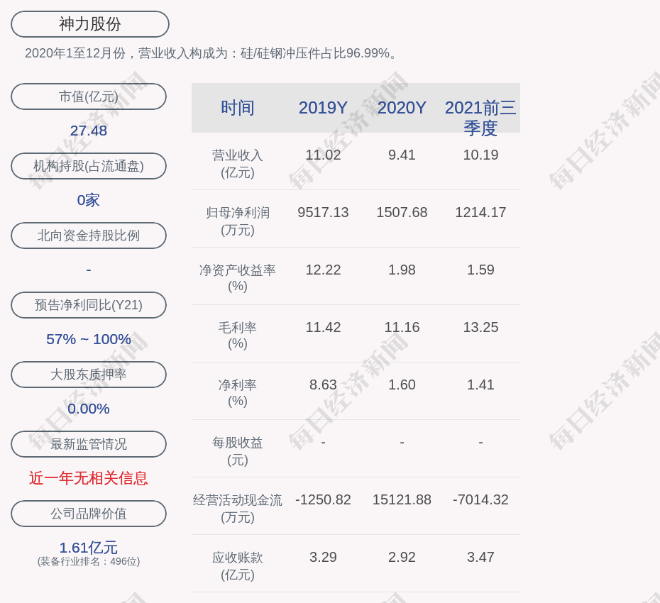 2020年1至12月份,神力股份的营业收入构成为:硅/硅钢冲压件占比96.99%。