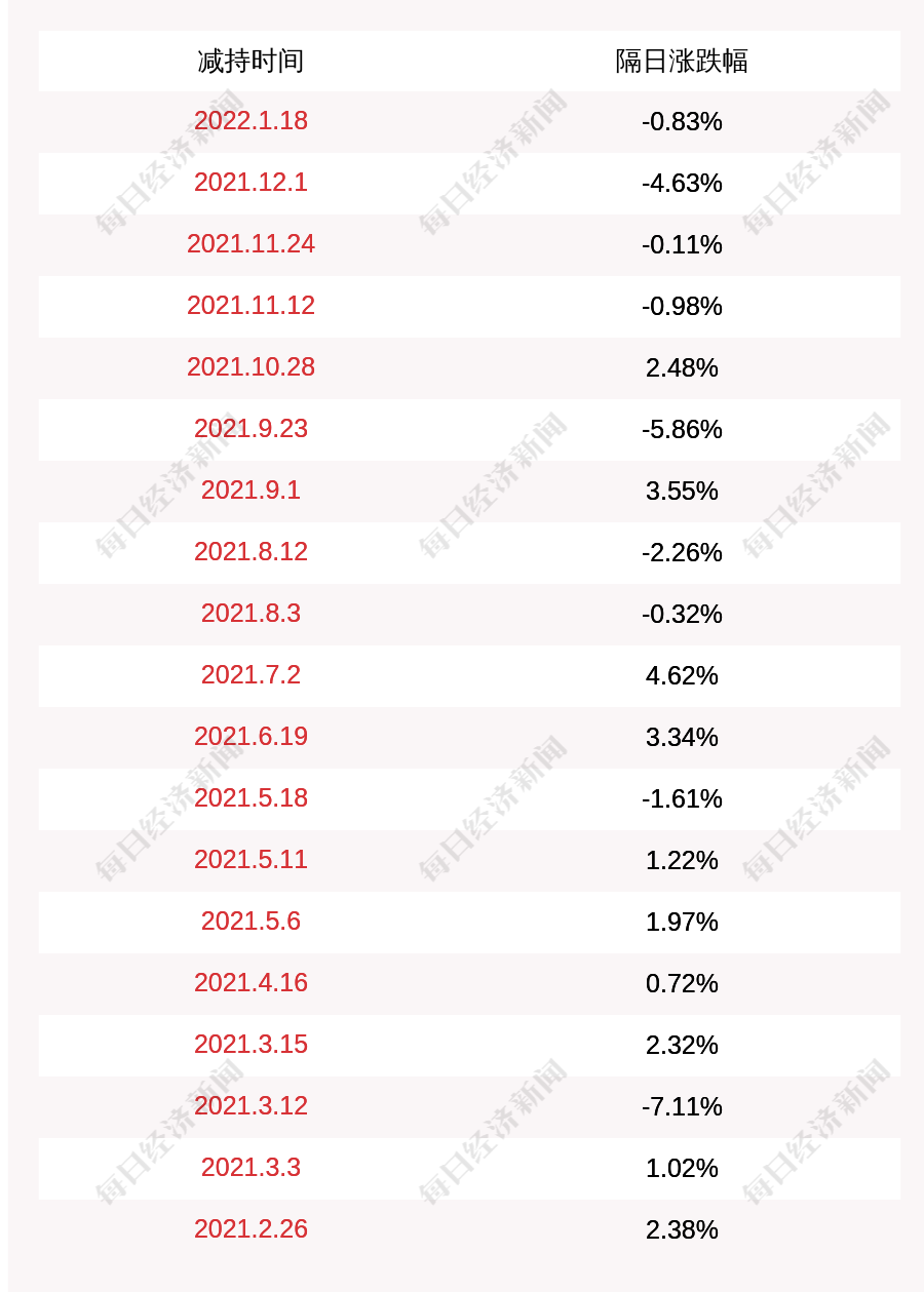 3. 精准信息上次发布减持公告是2022年01月18日,第二个交易日下跌0.83%,精准信息近一年共发布20次减持类公告。