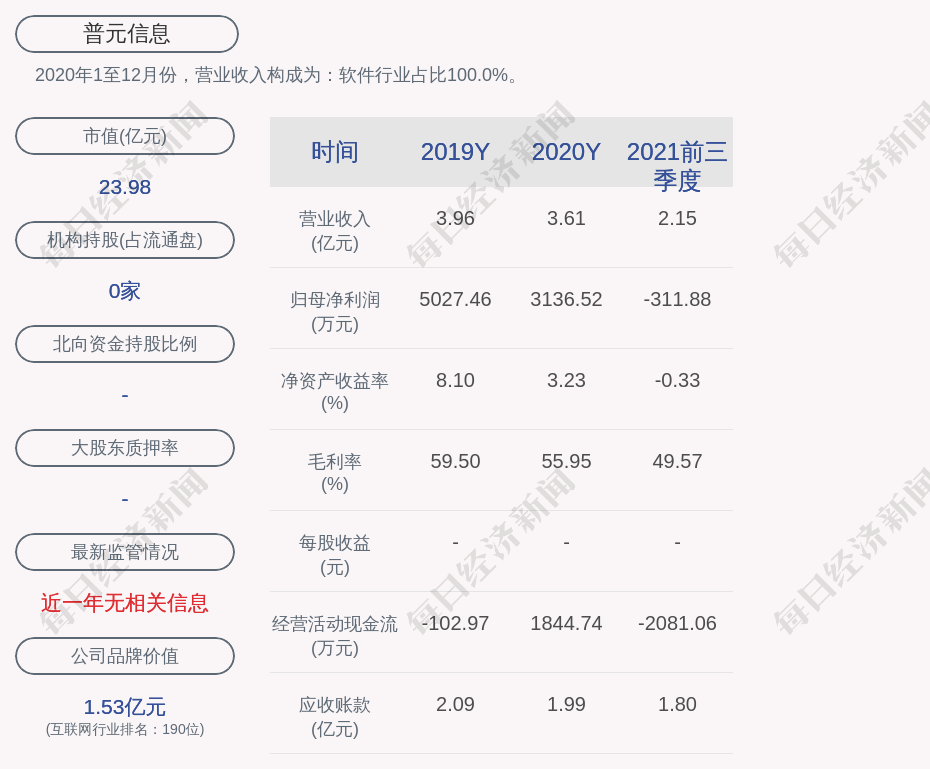 2020年1至12月份,普元信息的营业收入构成为:软件行业占比100.0%。
