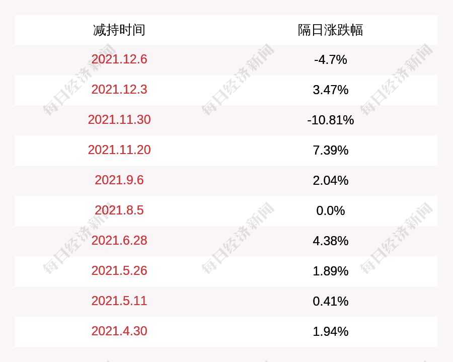2. 晨化股份上次发布减持公告是2021年12月06日,第二个交易日下跌4.7%,晨化股份近一年共发布11次减持类公告。