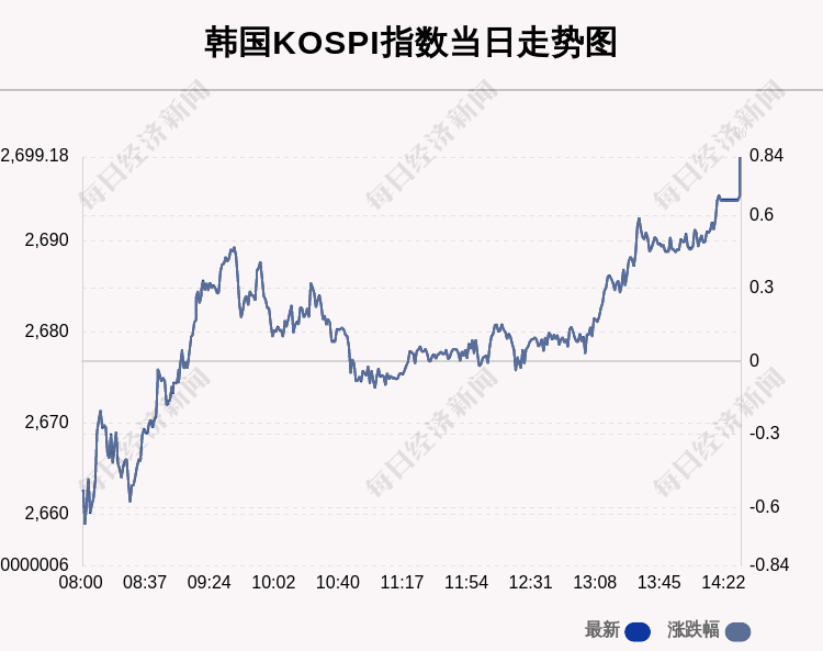 每经AI快讯:北京时间2月28日14:00,韩国KOSPI指数收盘上涨22.42点,涨幅为0.84%,报2699.18点。