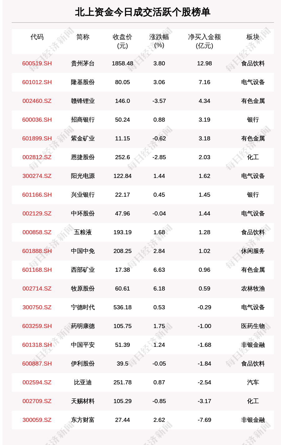 3月1日,北上资金成交活跃个股榜单中,净买入个股共13只,金额最多的是贵州茅台(600519.SH,收盘价:1858.48元),净买入12.984亿元;净卖出个股共7只,金额最多的是东方财富(300059.SZ,收盘价:27.44元),净卖出7.690亿元。