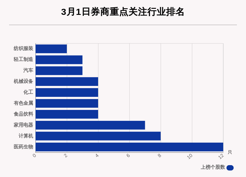 从券商对行业的关注度来看,券商关注个股数居前的行业分别是医药生物、计算机、家用电器。