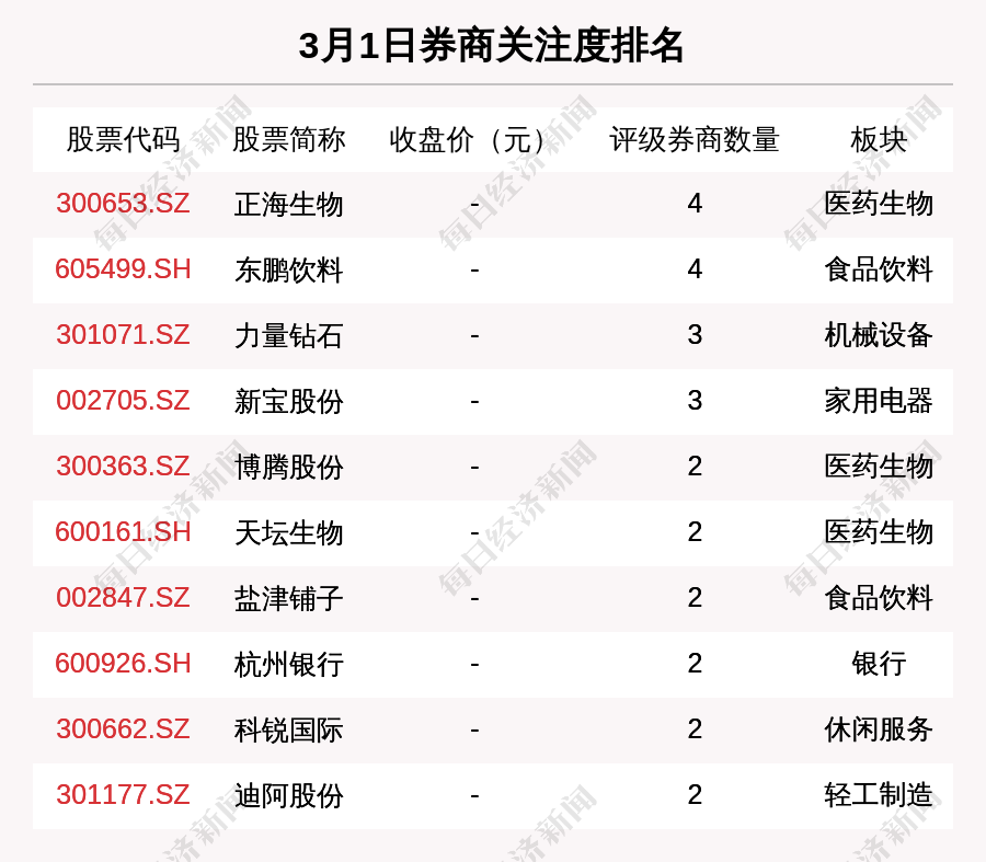 从券商对个股的关注程度来看,有17只个股获得多家券商关注,券商关注数量排名居前的个股是正海生物(300653.SZ)、东鹏饮料(605499.SH)、力量钻石(301071.SZ)。