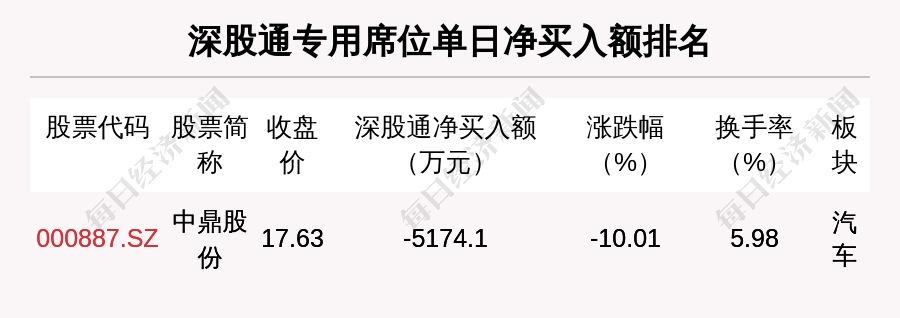 在龙虎榜中,涉及深股通专用席位的个股有1只,中鼎股份的深股通专用席位净卖出额最大,净卖出5174.1万元。