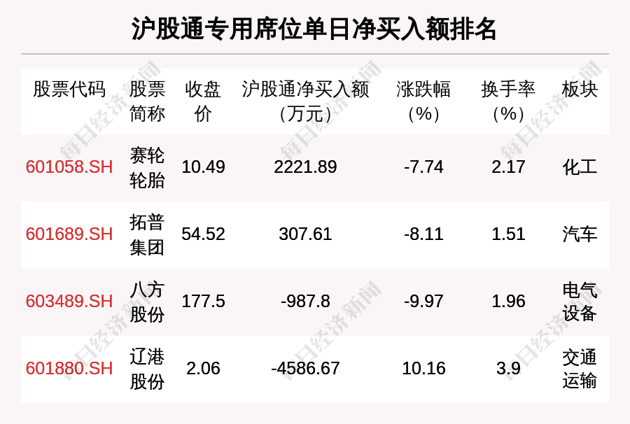 在龙虎榜中,涉及沪股通专用席位的个股有4只,赛轮轮胎的沪股通专用席位净买入额最大,净买入2221.89万元。