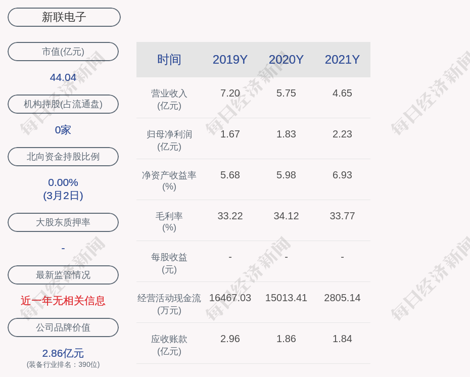 1. 新联电子近30日内北向资金持股量未发生变化;