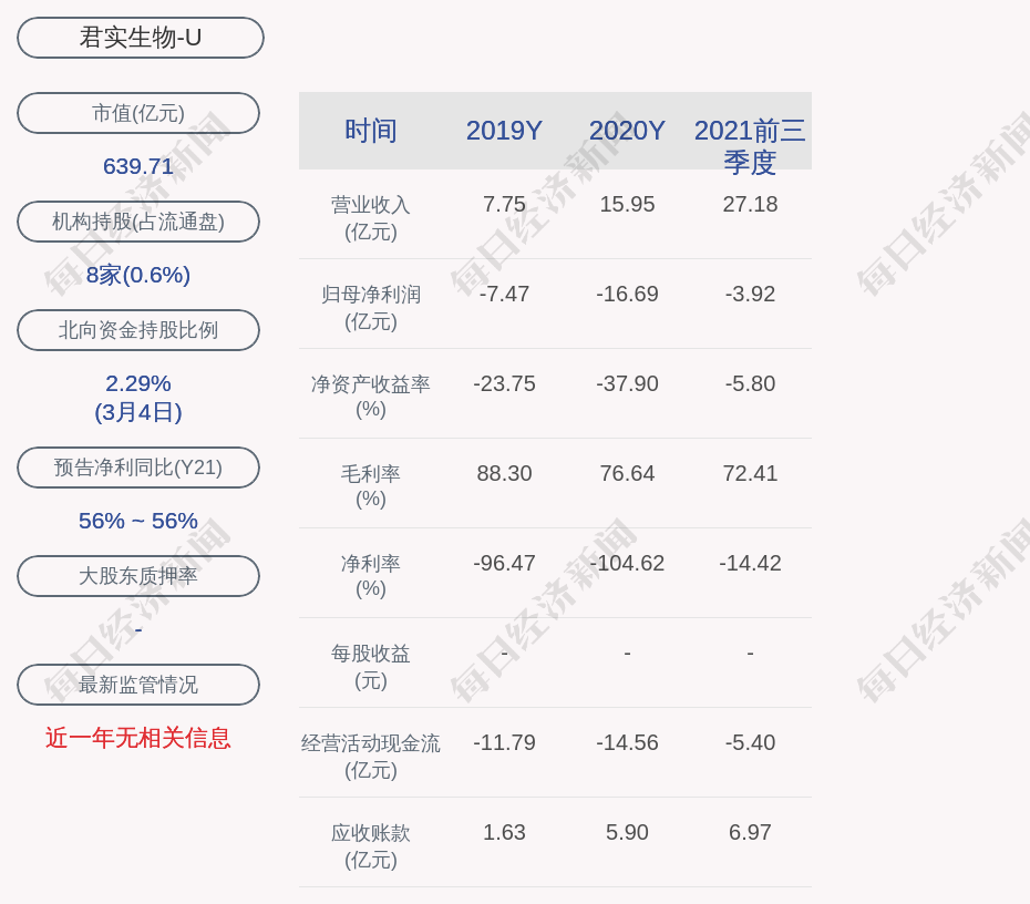 1. 君实生物-U近30日内北向资金持股量减少94.72万股,占流通股比例减少0.21%;