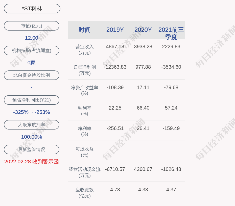 2. *ST科林在近3个交易日上涨8.73%,所属公用事业板块同期下跌5.46%,深证成指同期下跌7.25%。