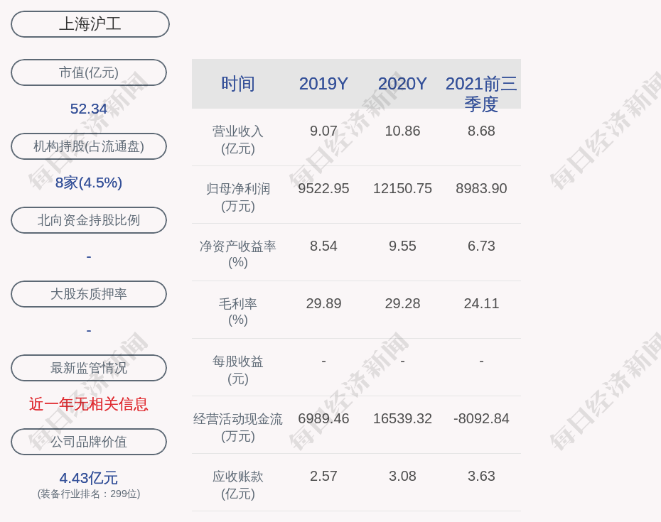 每经AI快讯,上海沪工(SH 603131,收盘价:16.46元)3月9日晚间发布公告称,公司股东宇斯有限于2022年2月16日至2022年3月4日期间减持公司股份约289万股,减持股份占公司总股份为0.9101%。本次减持计划时间已过半。