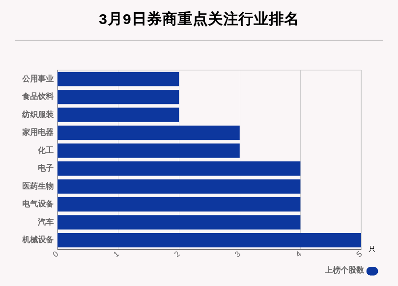 从券商对行业的关注度来看,券商关注个股数居前的行业分别是机械设备、汽车、电气设备。