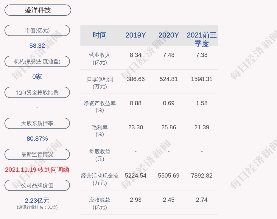 每经AI快讯,盛洋科技(SH 603703,收盘价:19.53元)3月10日晚间发布公告称,截至2022年3月10日,公司通过上海证券交易所交易系统以集中竞价交易方式累计回购股份约620万股,占公司总股本的2.08%,与2022年3月2日披露数约474万股相比增加0.49%,购买的最高价为24.1元/股,最低价为11.24元/股,累计支付的总金额为人民币约1.1亿元。
