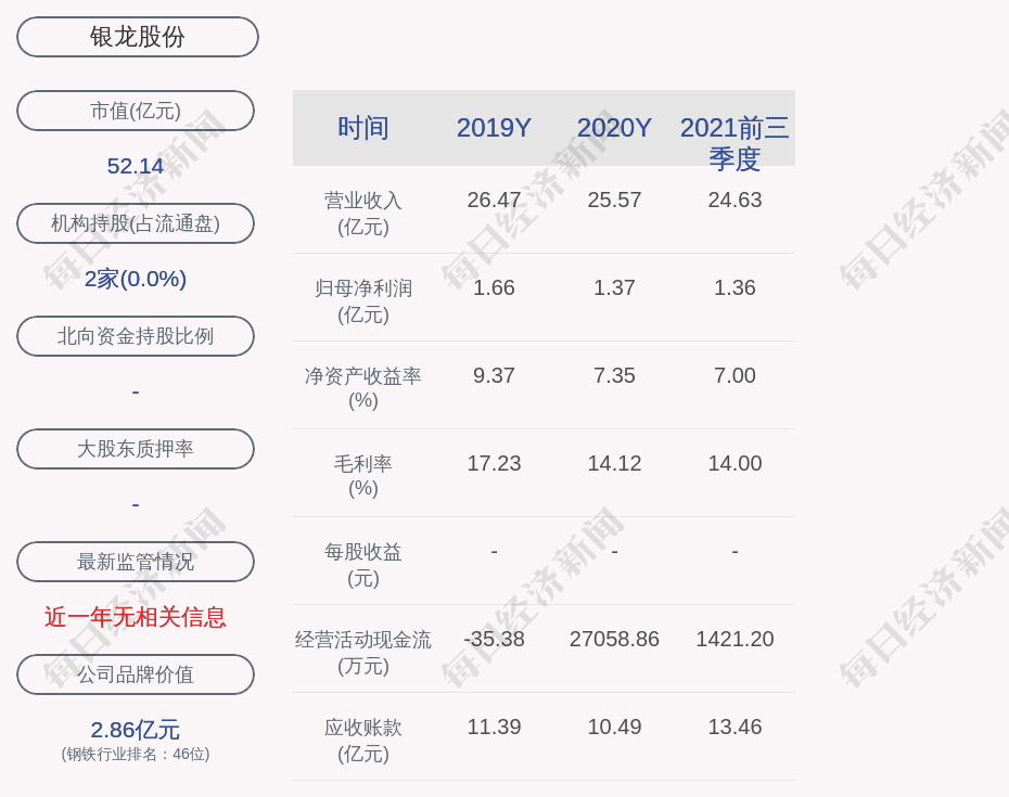 2. 银龙股份在近3个交易日上涨23.75%,所属机械设备板块同期下跌3.09%,上证指数同期下跌2.28%。