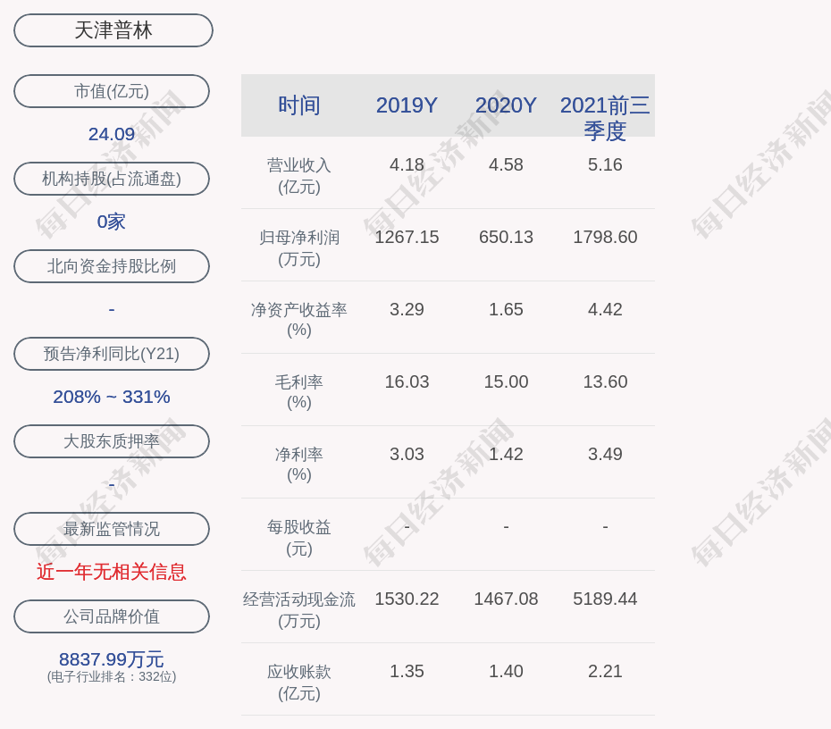 1. 近30日内无机构对天津普林进行调研;
