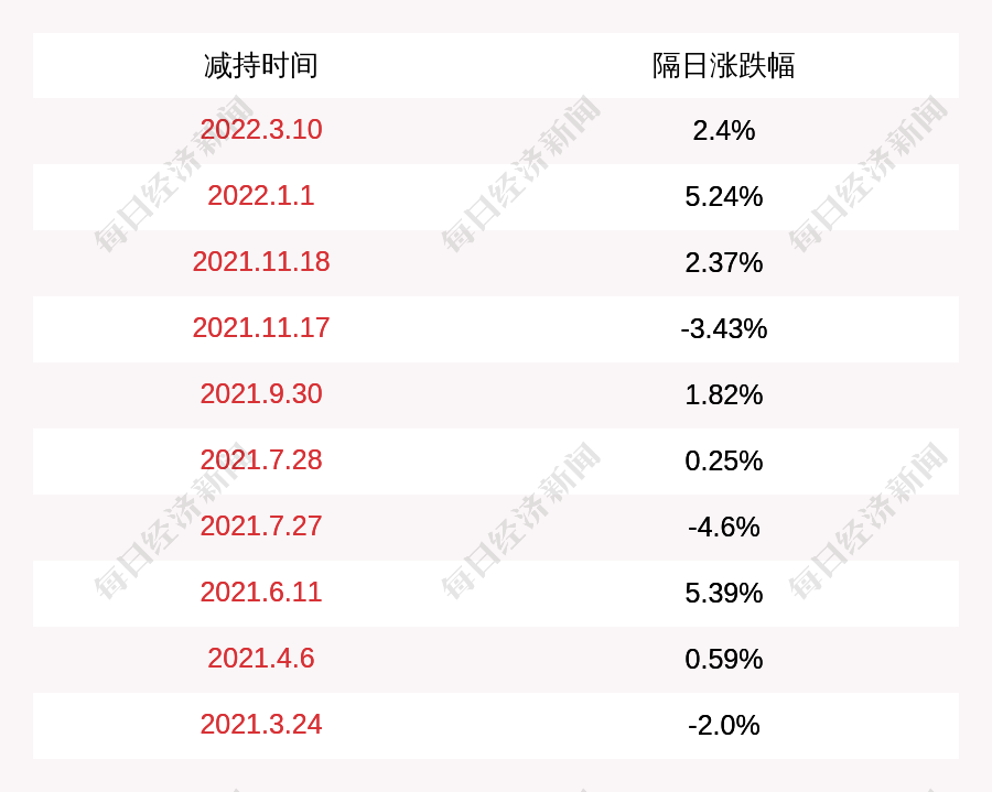 2. 新通联上次发布减持公告是2022年03月10日,第二个交易日上涨2.4%,新通联近一年共发布11次减持类公告。